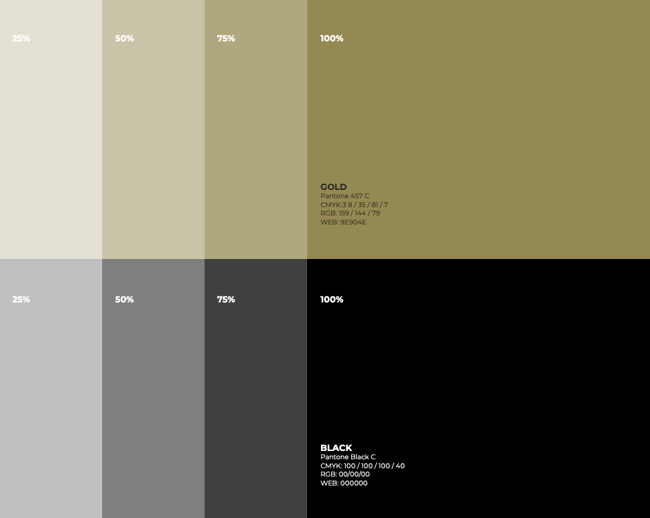 Gold & Black are our primary brand colors and should be the default choice when using the Efecto Espejo logo.