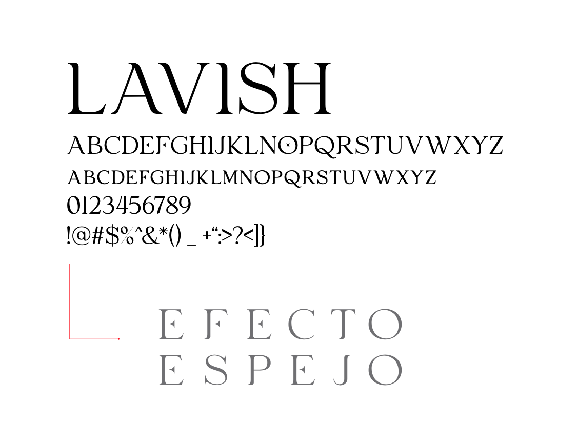The Efecto Espejo logotype was created using a “Lavish” Font to infuse the brand with personality and style. The spacing between letters was carefully adjusted to maintain visual harmony and readability while aiming to strike the ideal balance between legibility and visual attractiveness. Brand Identity Project