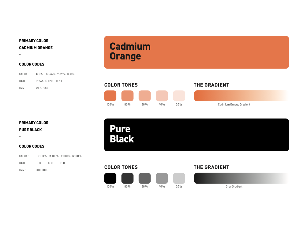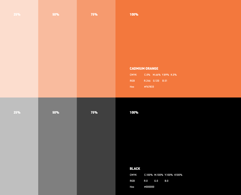 Cadmium Orange and Pure Black. These colors have become a recognizable identifier for the company.