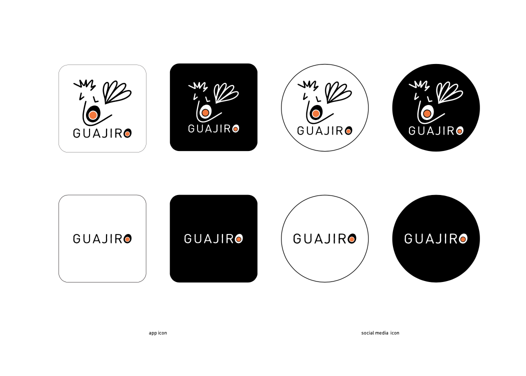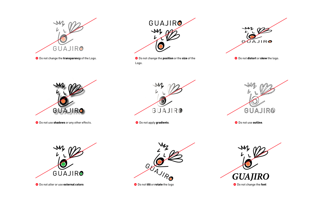 Consistent use of these colors will contribute to the cohesive and harmonious look of the GUAJIRO brand identity across all relevant media. Check with your designer or printer that they will always be consistent when using corporate colors.
