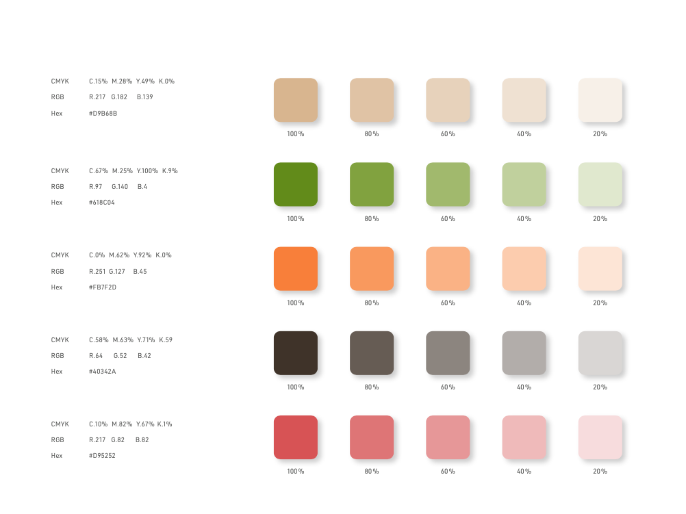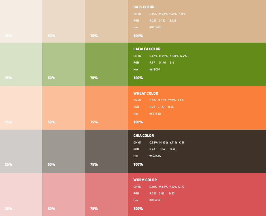 The Secondary colors complement our official colors but are not recognizable identifiers for GUAJIRO’S. Secondary colors should be used sparingly, that is, in less than 20 percent of the palette in one piece.